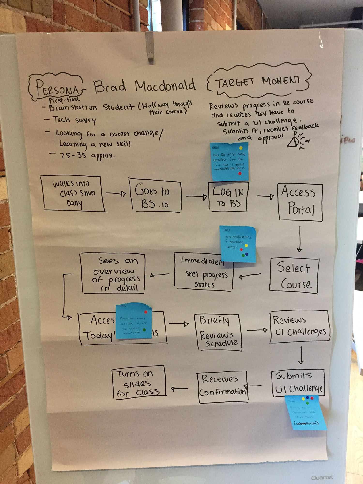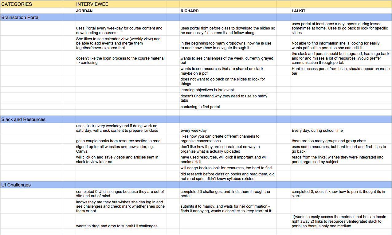 BrainStation offers a variety of intensive courses in digital design, every student has access to a portal, which is set up to help students organize course material and assets. One of the sprint challenges of the User Experience Immersive bootcamp was to propose a re-design of the current student portal.