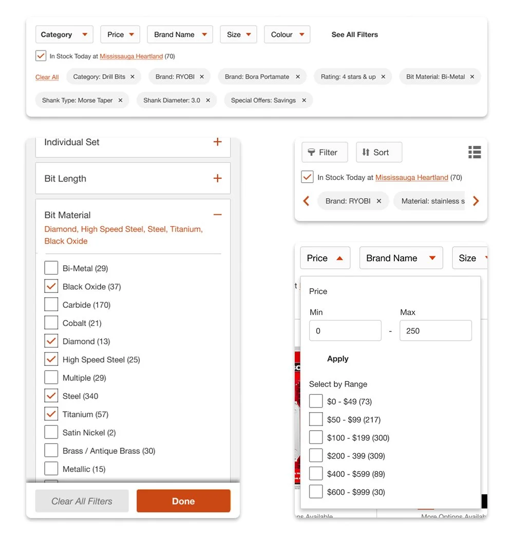 Redesigned the Product Listing and Search Results experience to modernize an outdated interface, address usability complaints, and improve product discoverability across desktop, tablet, and mobile. The initiative focused on rethinking filtering architecture, sorting behavior, and visual navigation patterns while establishing scalable components for future growth.